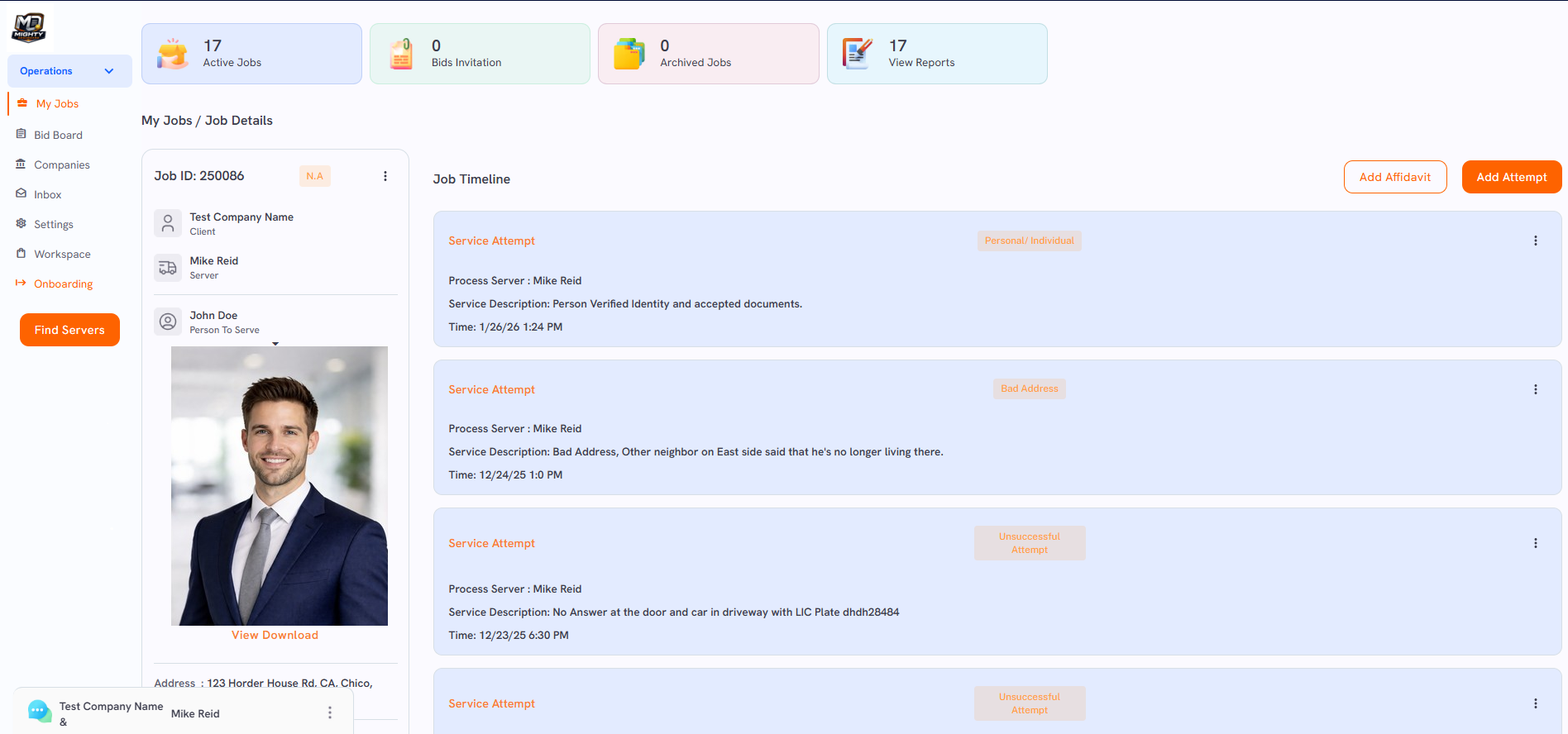 Access detailed, court-ready reports that capture every attempt and result. From affidavits to final outcomes, get the documentation you need with complete transparency.